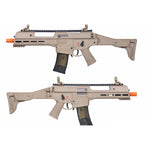 The GSG G14 is among the most technological advanced AEG rifle on the market with cutting edge internal and external features. The GSG G14 AEG features a realistic electric blowback system to simulate recoil. Additional features include an Electronic Fire Control System which helps cut down on jams / gear lock by cutting power to the gearbox when a battery approaches low voltage levels. Other features includes a 7 position retractable stock, integrated carrying handle, ambidextrous selectors, flip-up sights, functional bolt catch, integrated heat sink, quick change spring gearbox, easy take down, mock silencer / tracer unit ready, scope ready, attachments ready and much more!