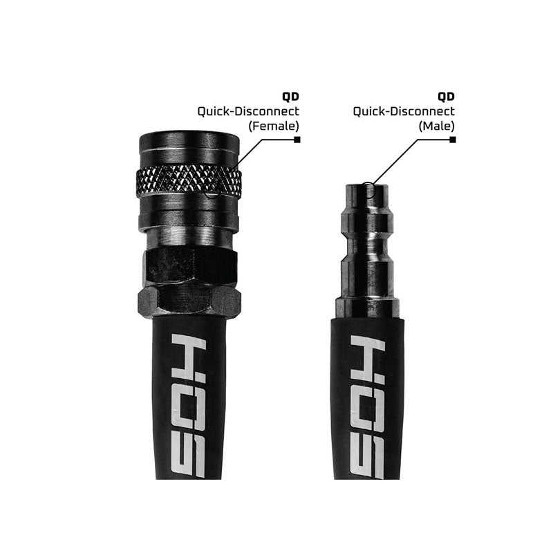 The Hostile Airsoft Flex Line - the perfect connection for your HPA setup. This 42-inch line hits the sweet spot in length, giving you the freedom to move without getting tangled. With dual quick disconnects on both ends, switching up or breaking down your gear has never been easier. Its high-strength nylon sheathing keeps it durable and ready for any action, while the wide-bore design ensures max airflow to keep you shooting strong. Available in multiple colors, it fits most regulators and HPA systems. Get connected, stay locked in, and let the Flex Line power up your game.