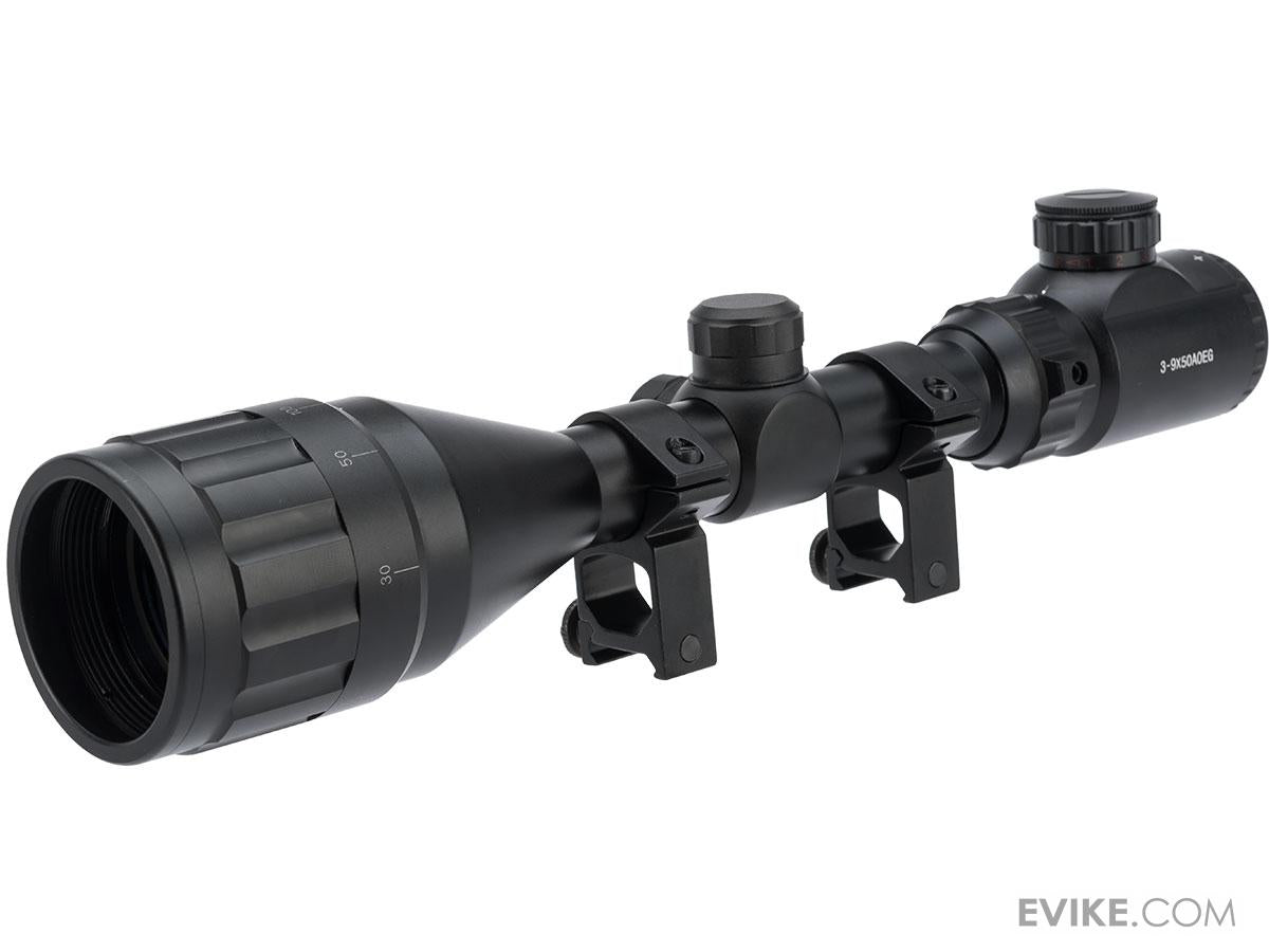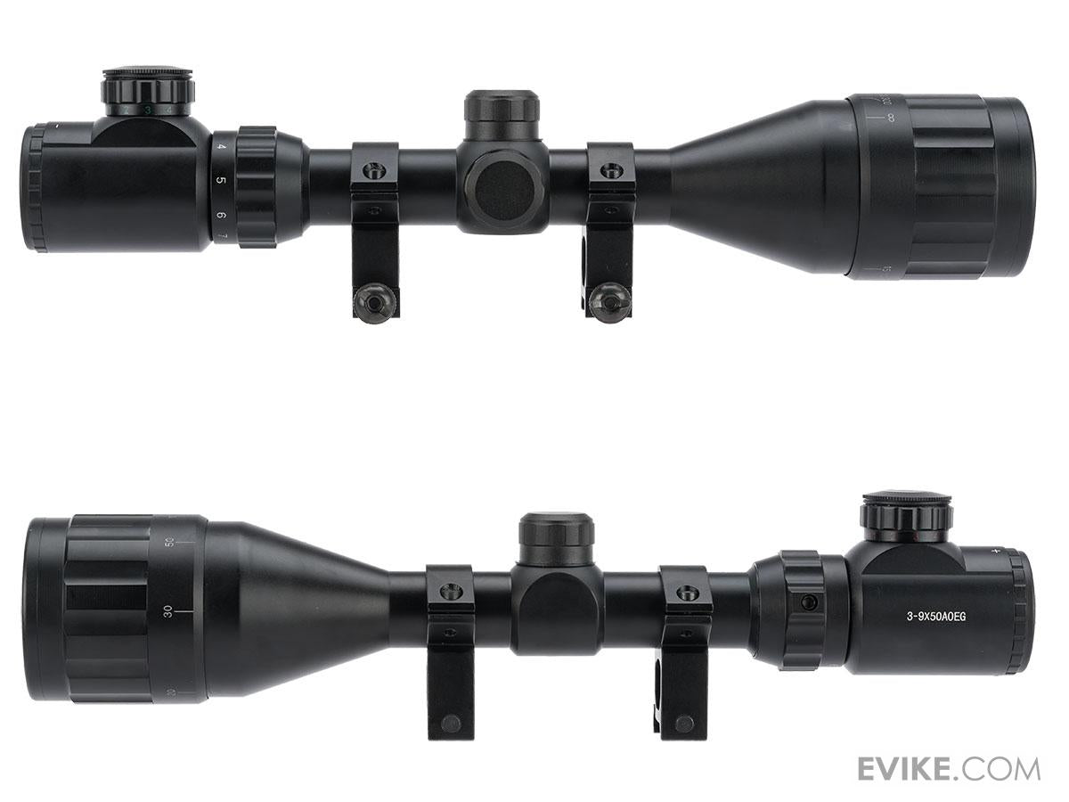 UFC 3-9X50 AOEG Illuminated Variable Zoom Rifle Scope with Scope Rings (Color: Black)