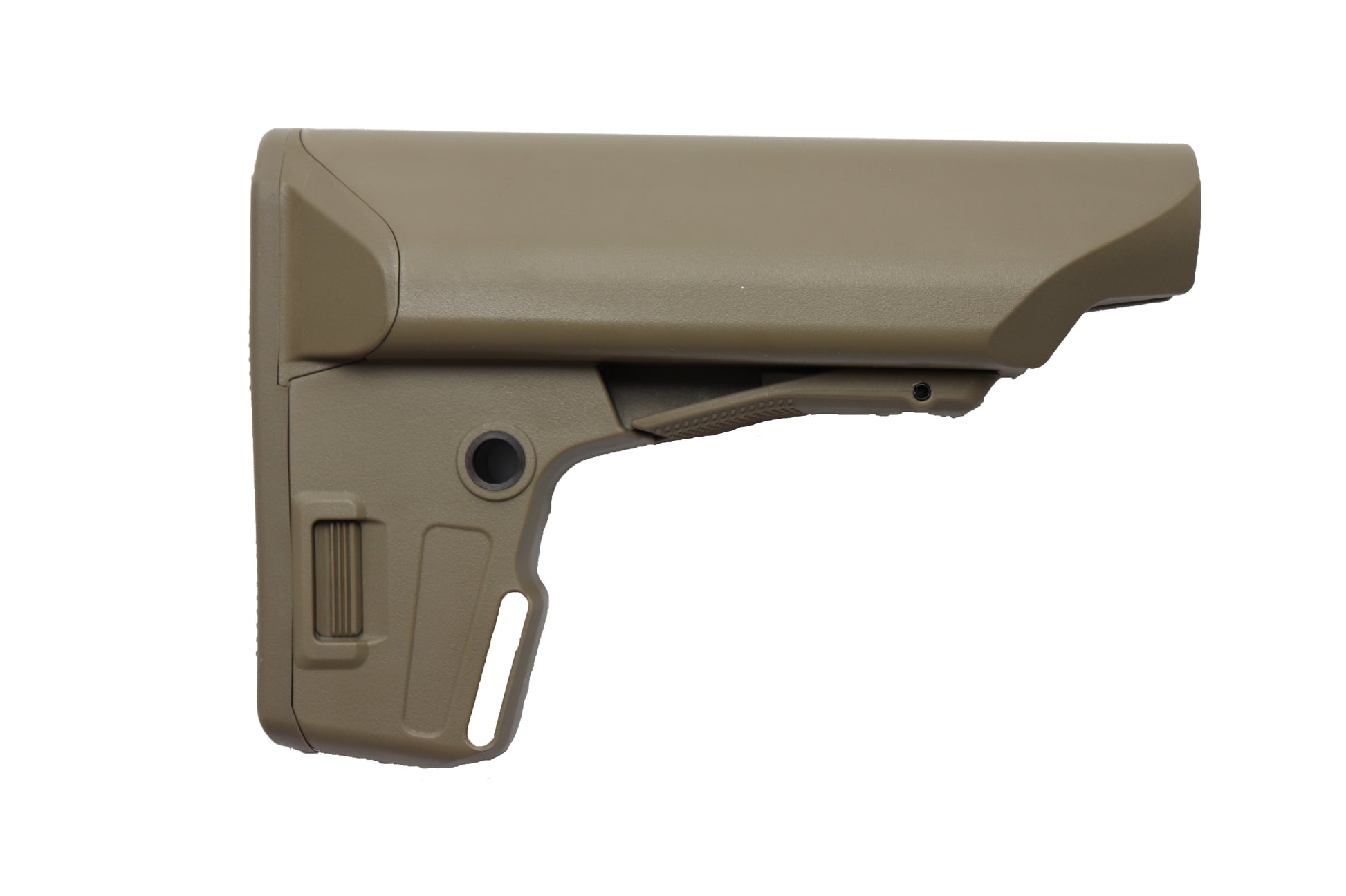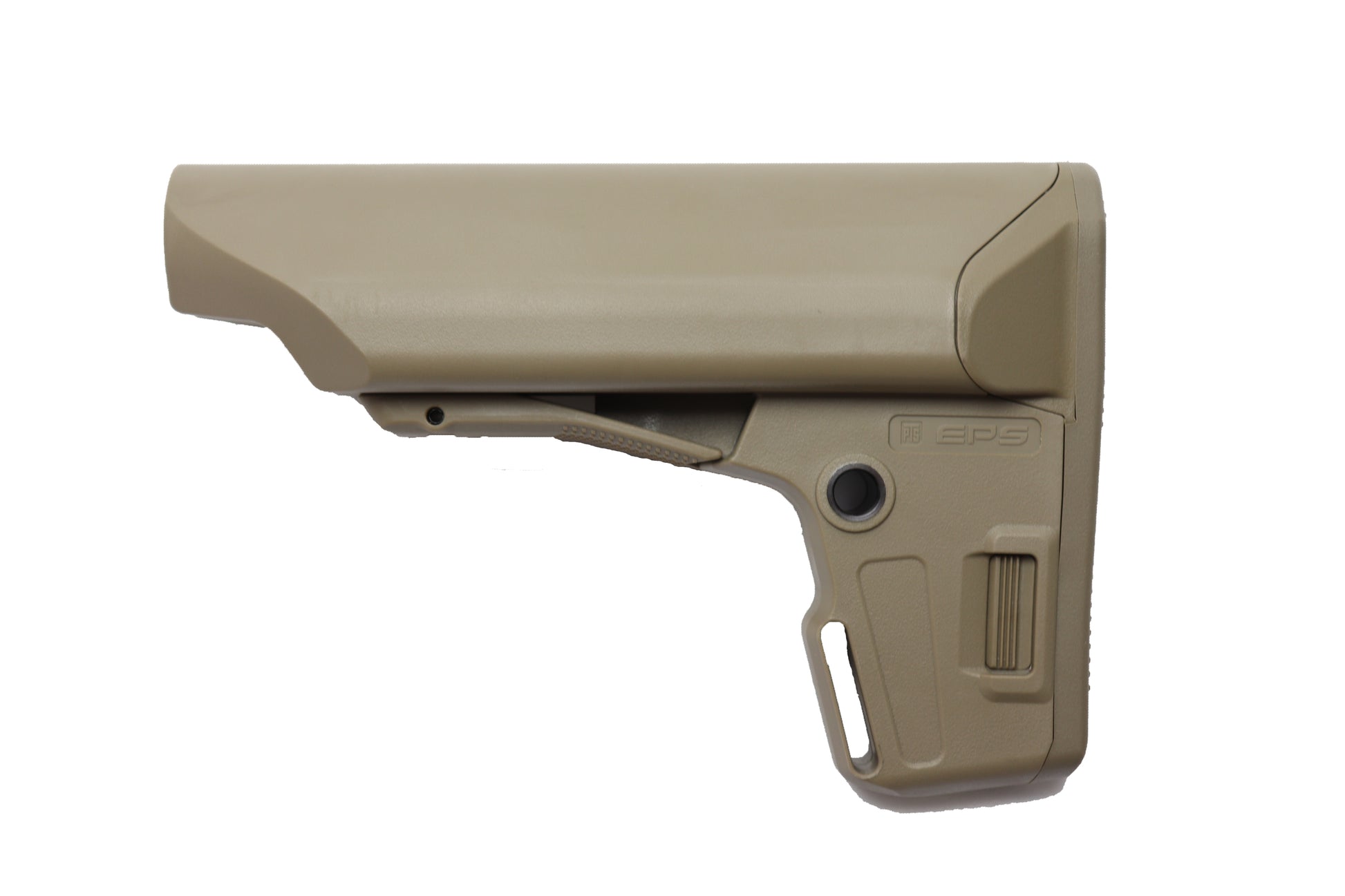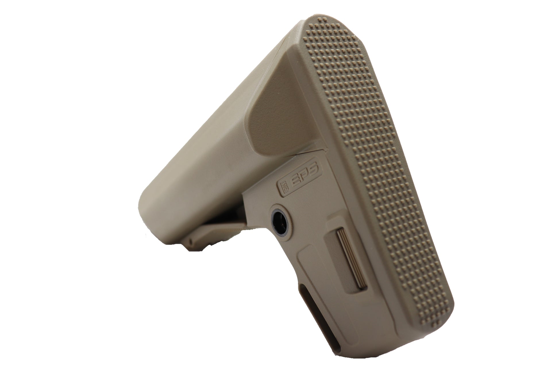 The PTS Enhanced Polymer Stock (EPS) is a full function collapsible polymer stock that offer the user lots of flexibility in how to utilze it. Like all the other PTS polymer products, it is manufactured with authentic Dupont Zytel polymer for superior wear and damage resistance and durability. The PTS EPS features a rubberized removable buttpad for comfort and a slip resistant grip. Fixed side storage compartments offer enhanced comfort and a consistent cheek weld. The side storage compartments measure up to 139 x 31 mm of spacing so you can fit 2 piece butterfly style 2/3A cell NiMH batteries or Lipo batteries to power your electric airsoft gun. Additionally, the rear portion of the stock can fit a 9.6V NiMH mini battery or a LiPo battery of similar size as well as be used for miscellaneous storage. There are multiple sling mounting options featured on the stock including QD swivel sockets on both sides with a pass-through channel for loop type sling attachments and a sling slot on the front side of the butt part of the stock. The EPS Stock is compatible with almost all AEG and GBBR buffer tubes.
