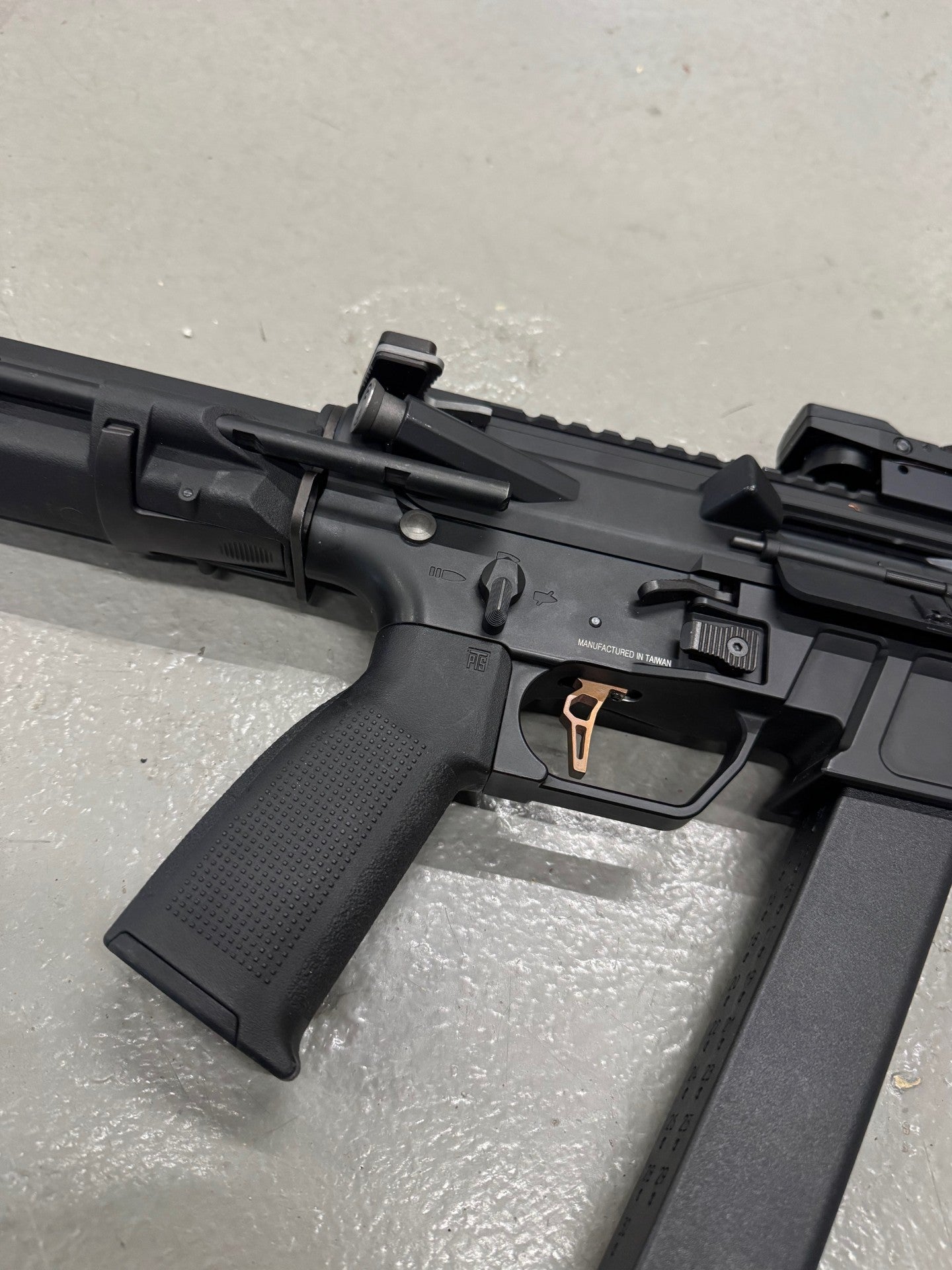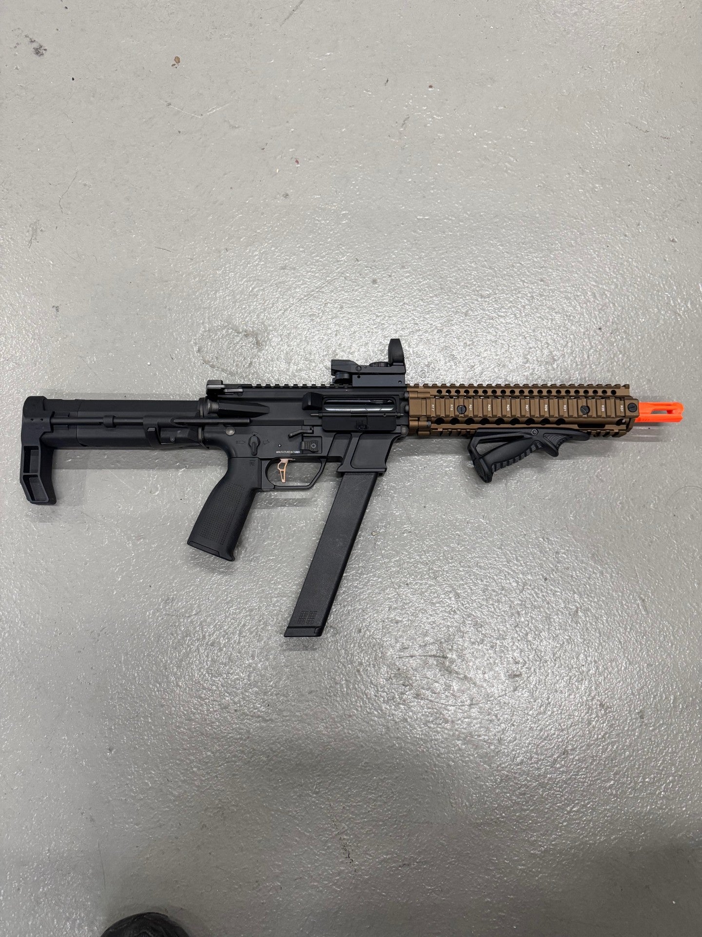 This pre-owned KWA SMG comes equipped with a GATE Titan MOSFET, delivering enhanced electronic control for reliable performance. It features a angle grip for improved handling and a Daniel Defense rail system for versatile accessory mounting. The upgrade includes a high-quality piston with AOE correction, four magazines, and a Ghost Trigger for quicker response times. Its red-dot sight aids in rapid target acquisition, making this SMG a solid choice for both casual and competitive airsoft play.
