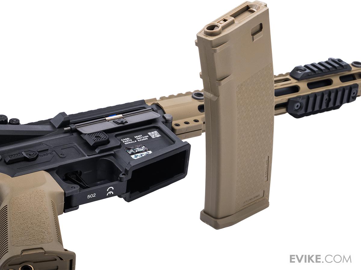 This magazine is known for its compact, durable construction and smooth design. Notably, it features the distinctive texture with Specna Arms logos. Made from durable polymer, its unique construction ensures compatibility with most replicas on the market and is ideally suited for various tactical setups. The S-MAG enables seamless feeding of BBs even at high rates of fire.