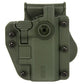 This unique retention holster option from ADAPTX eliminates the need of purchasing more than 1 holster for each of style and size of pistol in your arsenal. The six-step adjustable construction accommodates seemingly unlimited models of pistols made by companies such as Beretta, Colt, FN Herstal, Glock, Heckler & Koch, Smith & Wesson, Sig Sauer, Tauros, Tanfoglio, and much more! The specially designed ambidextrous build ensures both left and right handed players can use this holster with no limitations to functionality or comfort. The ABS plastic construction keeps this tactical accessory lightweight while still being extremely durable and can be attached to your MOLLE gear, thigh, belt, hip, or chest rig for the perfect fit. Never buy another holster again and pick yourself up one of the most versatile holsters on the market today.